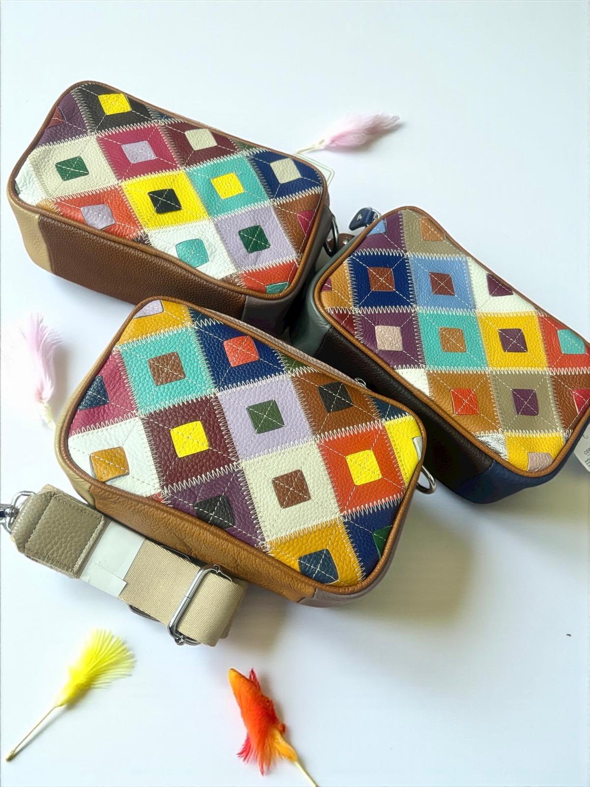 Multicolor, dotata di tracolla in tessuto. Per la scelta della variante contattami su whatsapp, colori simili ma mai uguali