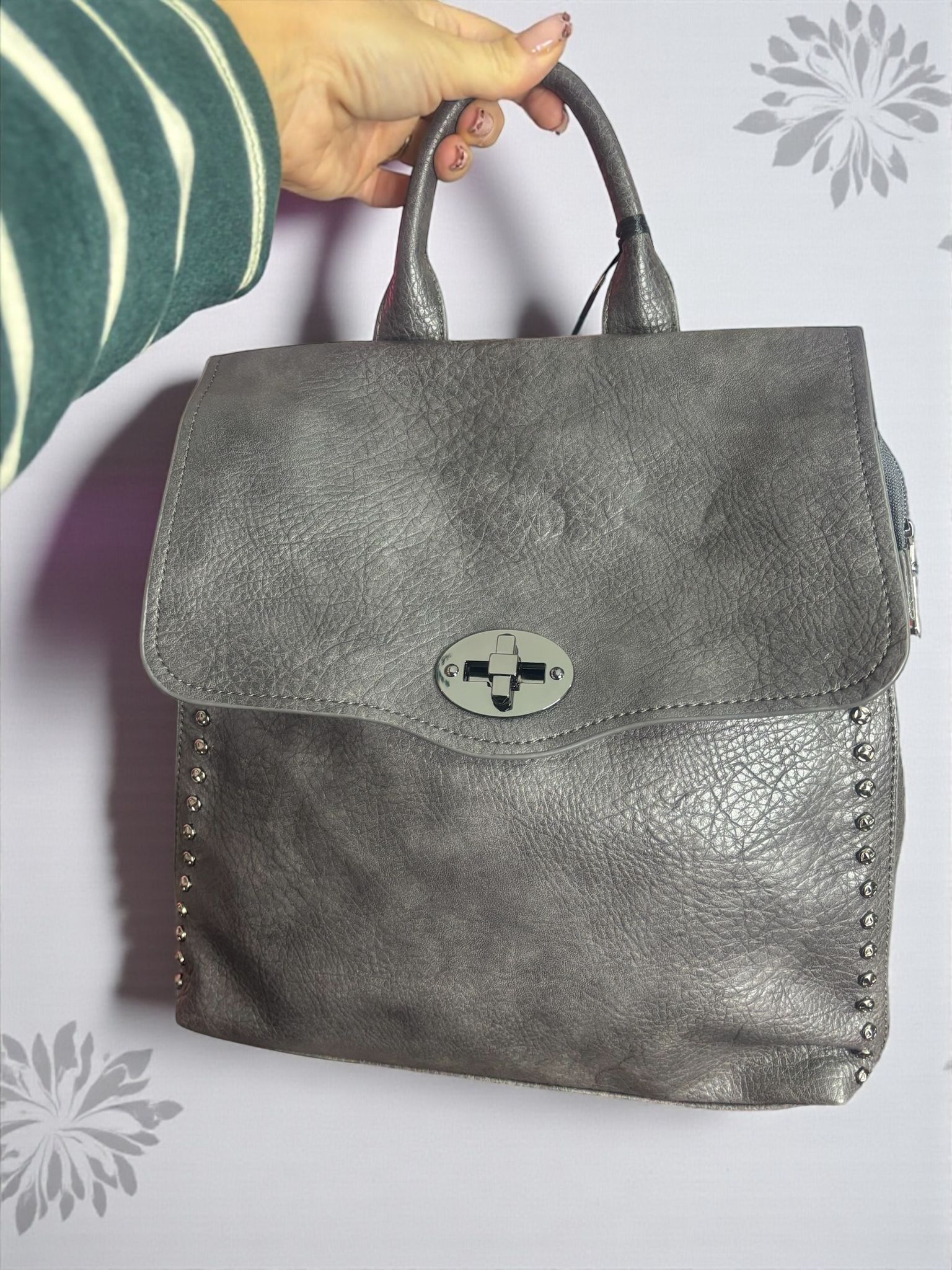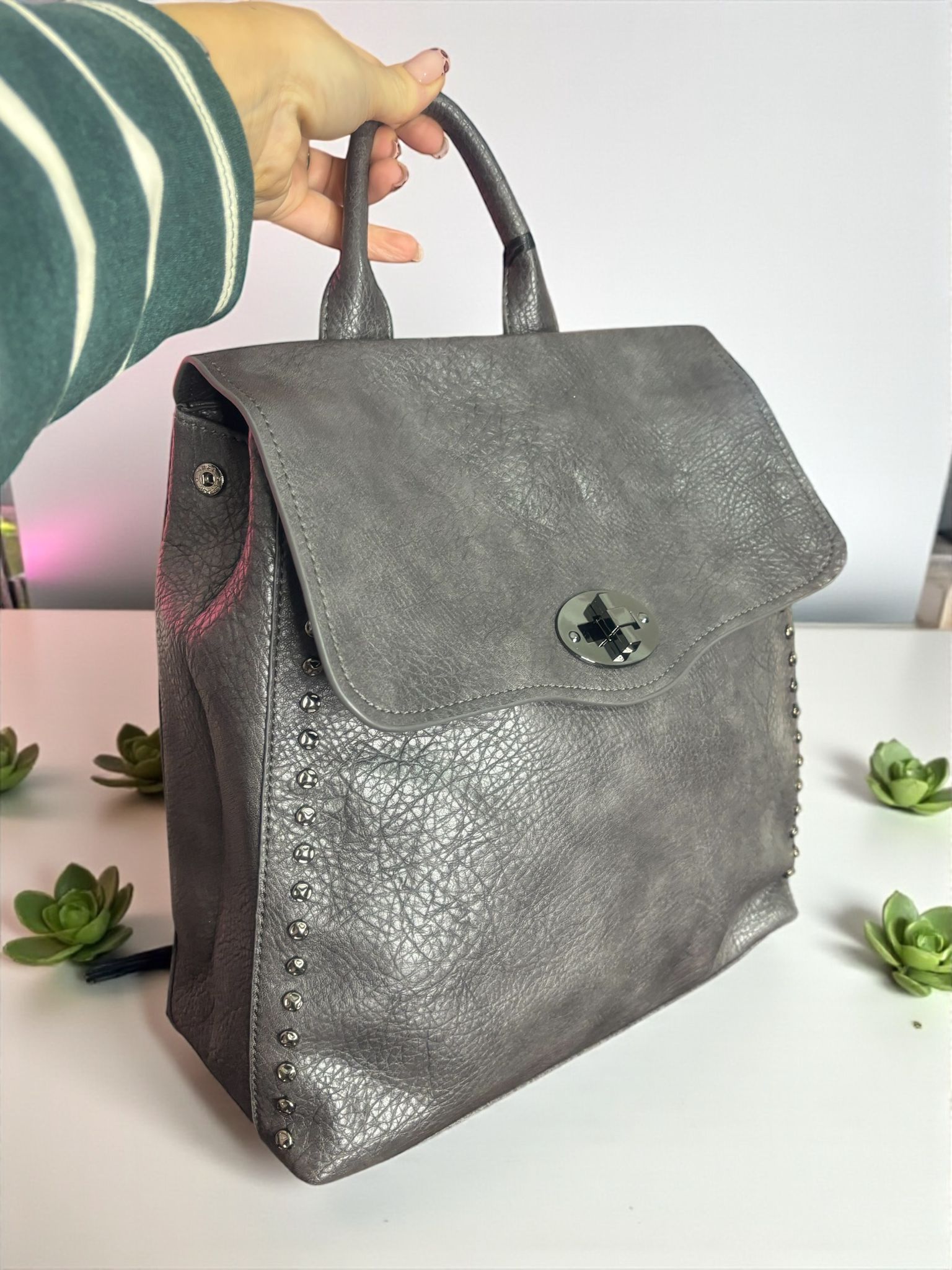 Zaino in ecopelle Grigio con borchiette laterali